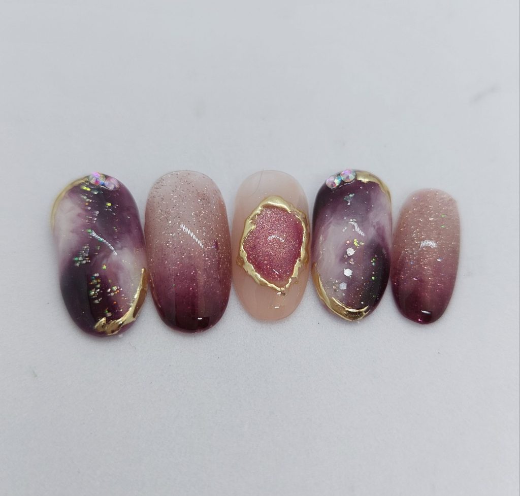 赤紫色の大理石風デザイン✨ 深みのあるお色は秋にすすめです😍
